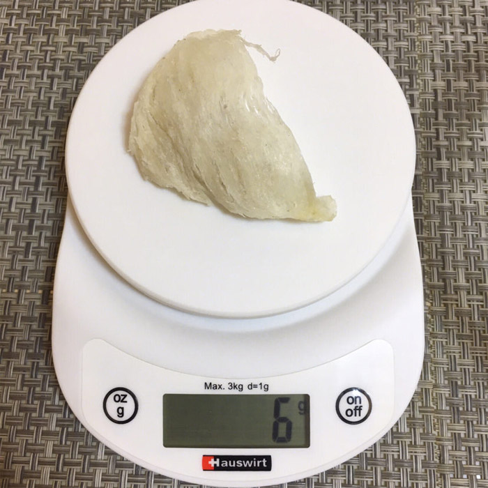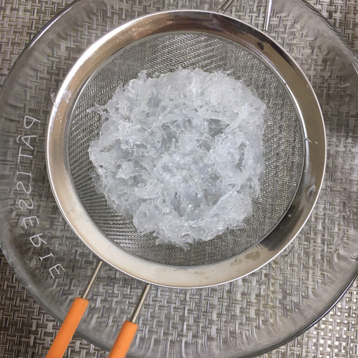 挑好以后用过滤网过滤好,再用新水泡发2小时左右。这时候燕窝就完全泡发开了。