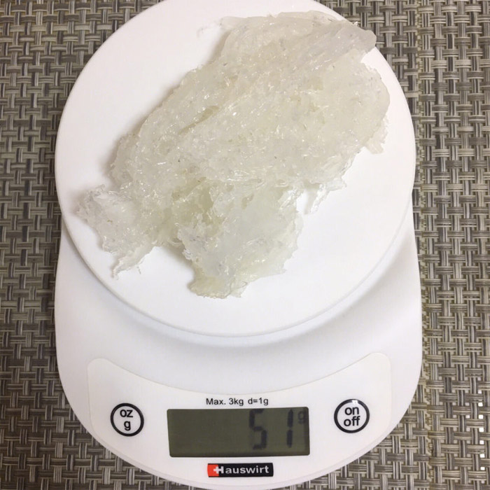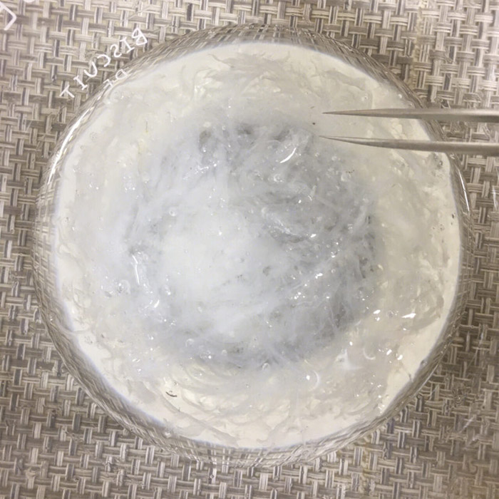 挑好以后用过滤网过滤好,再用新水泡发2小时左右。这时候燕窝就完全泡发开了。